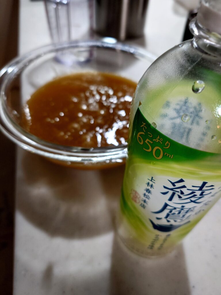 私はいつもレシピの2倍の量を作っている。お茶600~650ml、サイリウム(オオバコ)20g、ラカント大さじ6だ。私は買いだめしてある綾鷹650mlをまるまる使って作っているので、計量カップすら要らない。めちゃくちゃ楽なレシピである。